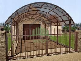 Откатные ворота, кирпич для столбов и все сопутствующие материалы для ленточного фундамента доставляются отдельно.